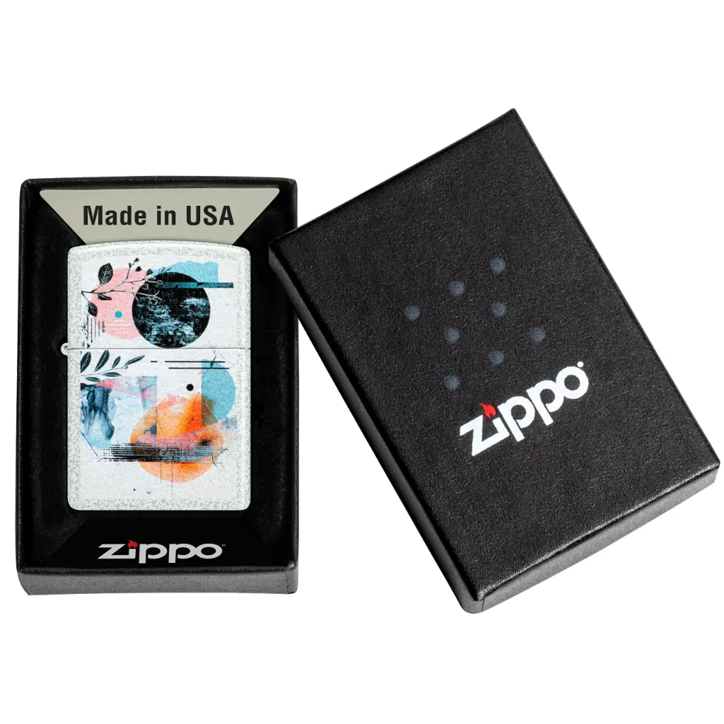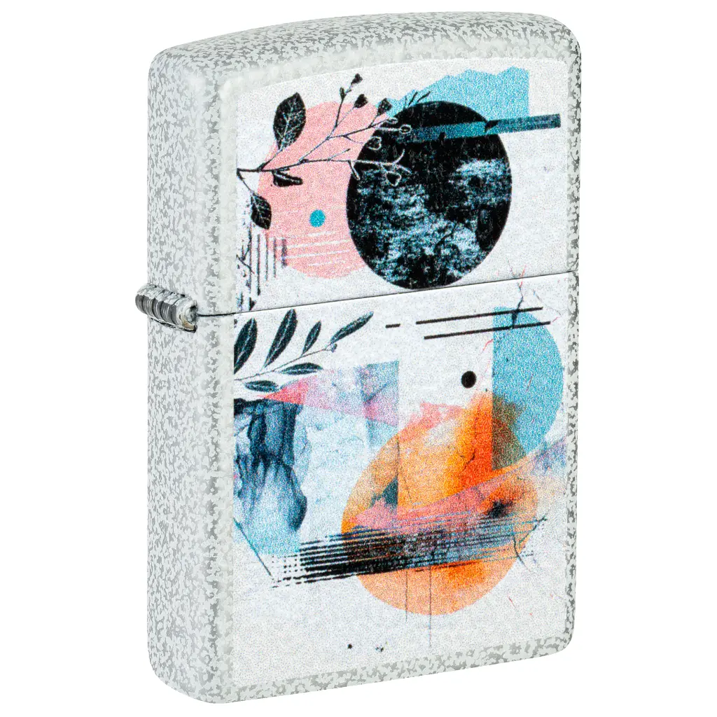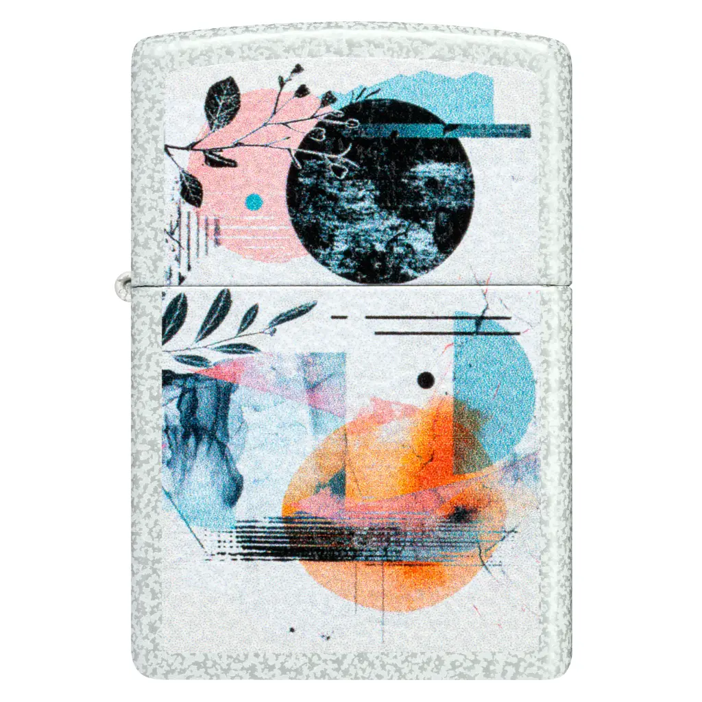 An abstract, mixed-media collage is replicated on this classic Glacier lighter in a mesmerizing Color Image design. Comes packaged in a gift box. For optimal performance fill with Zippo lighter fuel.
