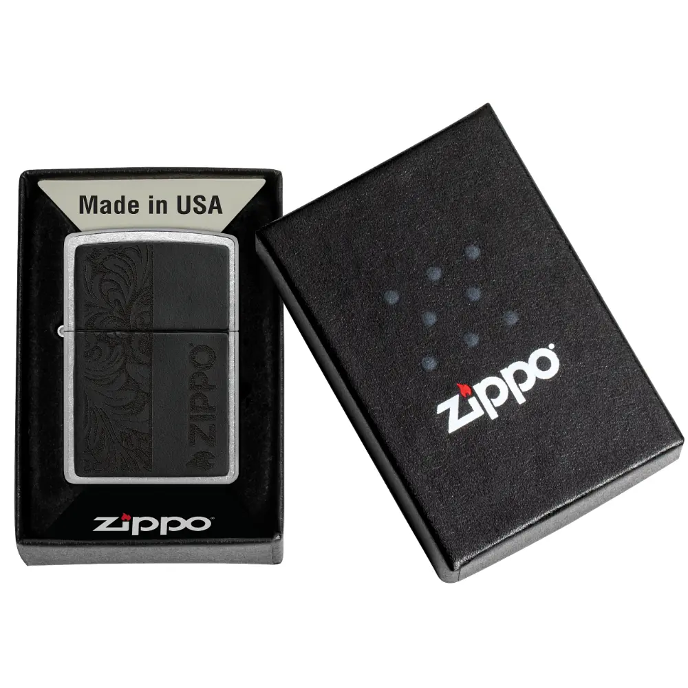 - Genuine Zippo windproof lighter with distinctive Zippo “click”