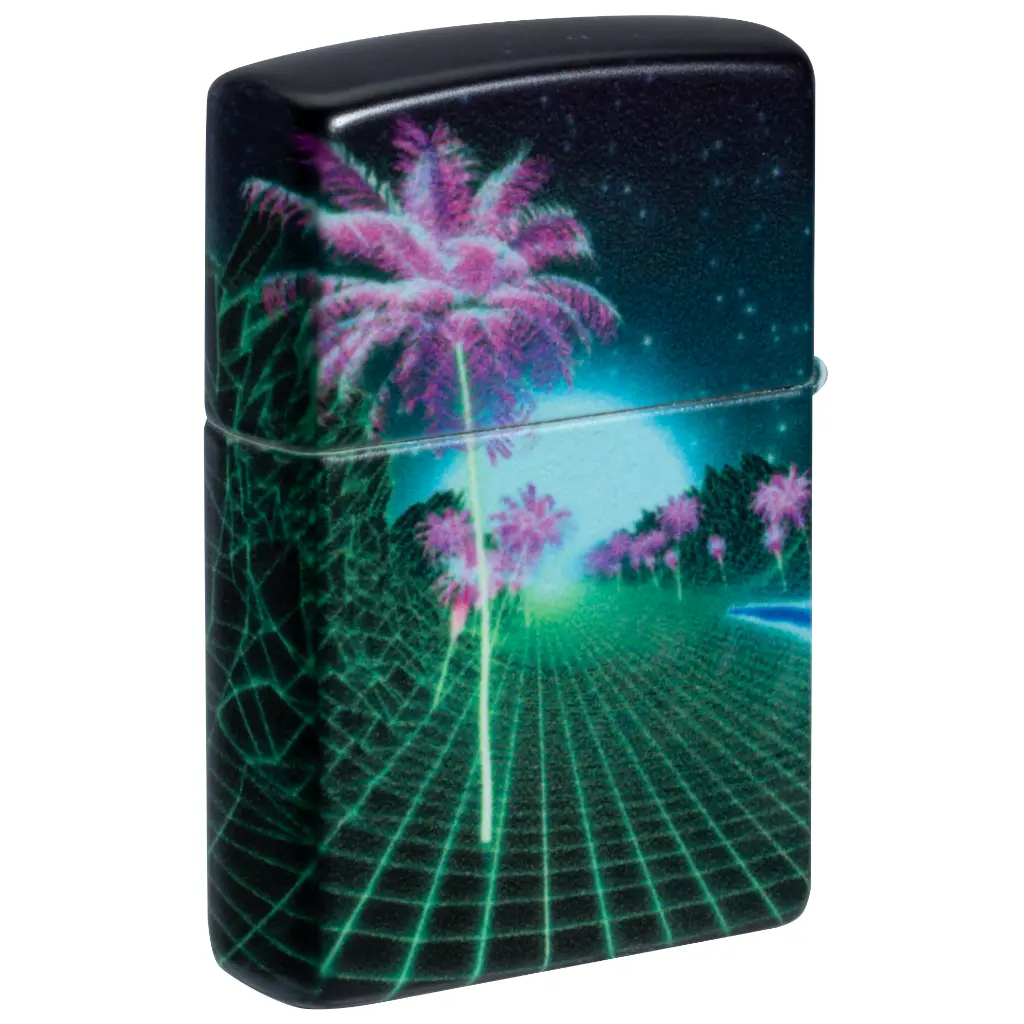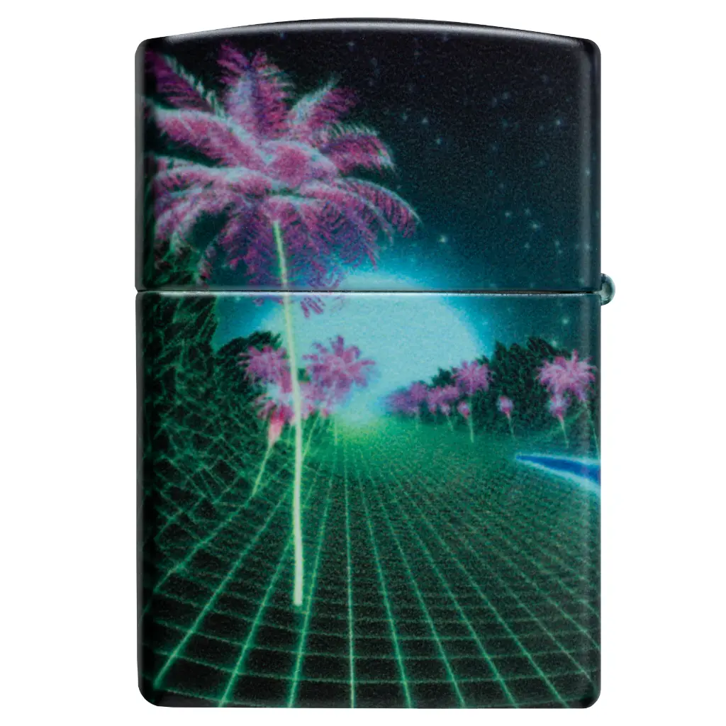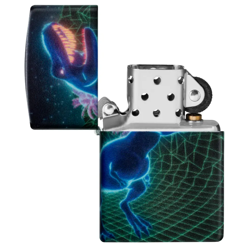 A ferocious dinosaur tears across the surface of this futuristic 540 Color lighter. The entire scene is treated with our Glow-in-the-Dark finish for added interest. Comes packaged in a gift box. For optimal performance fill with Zippo lighter fuel.