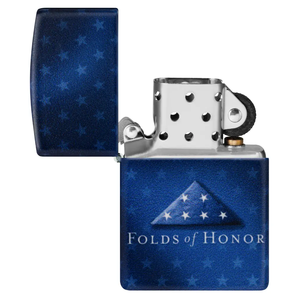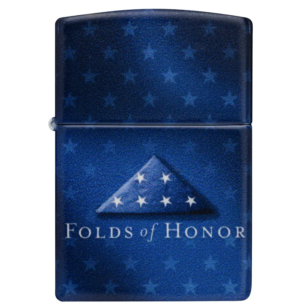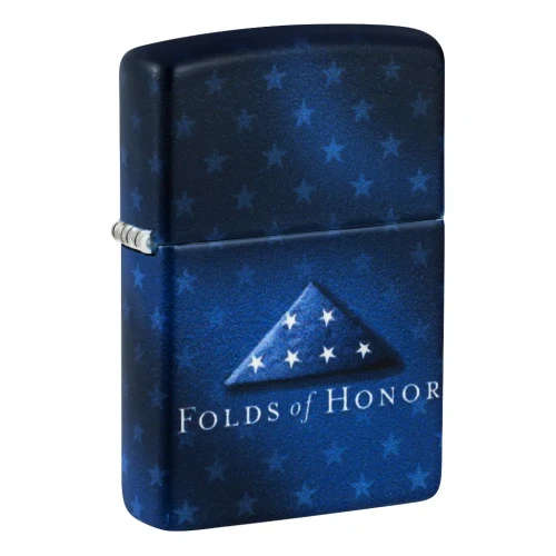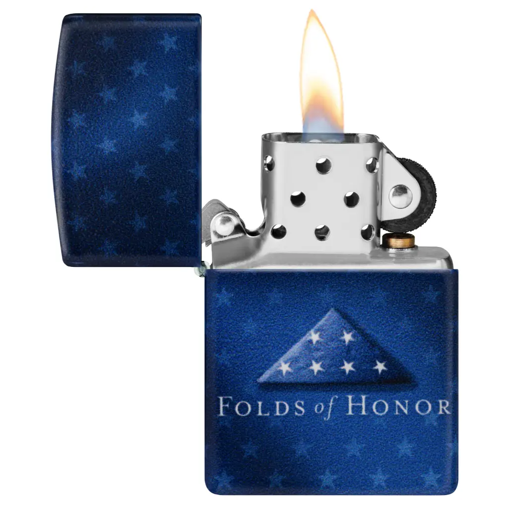 Founded in 2007, Folds of Honor provides life-changing scholarships to the families of fallen or disabled military members and first responders. This 540 Color lighter features the Folds of Honor logo over a bold, star-studded backdrop that extends seamlessly around each surface. In honor of America’s veterans, 11% of every purchase supports Folds of Honor and their ongoing mission. Comes packaged in a gift box. For optimal performance fill with Zippo lighter fuel.
