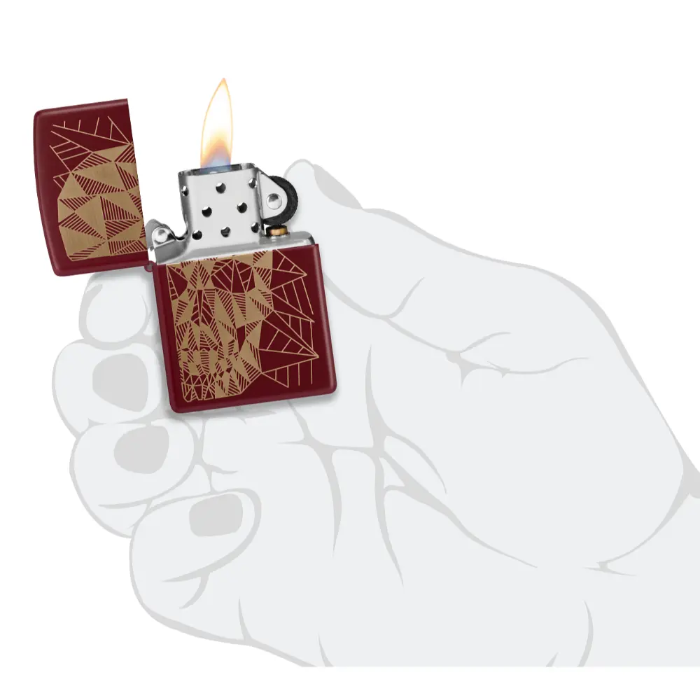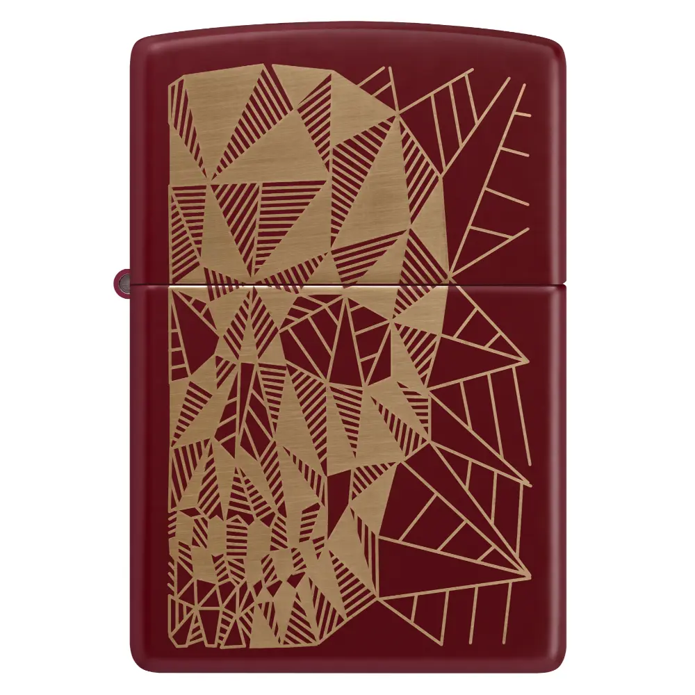 An intricate array of triangles form the shape of a grinning skull on this classic Merlot lighter in an abstract Laser Engrave design. Comes packaged in a gift box. For optimal performance fill with Zippo lighter fuel.
