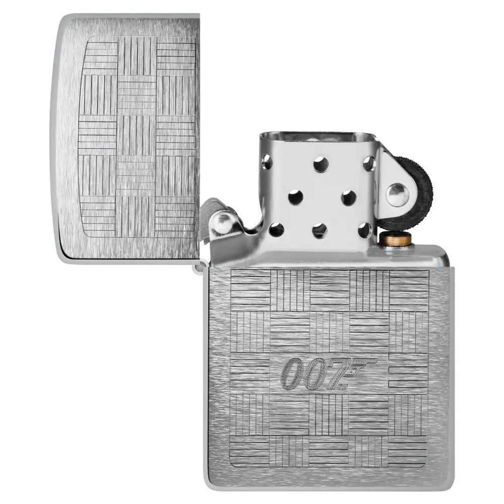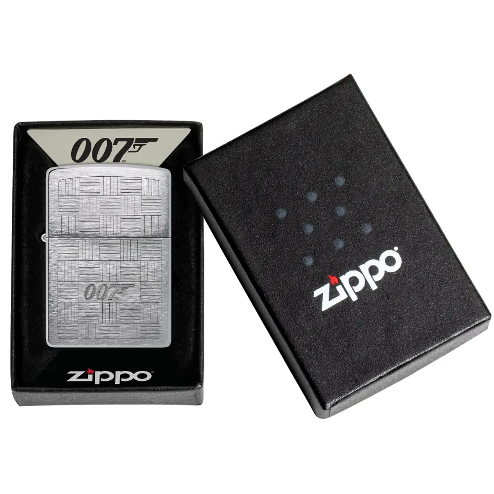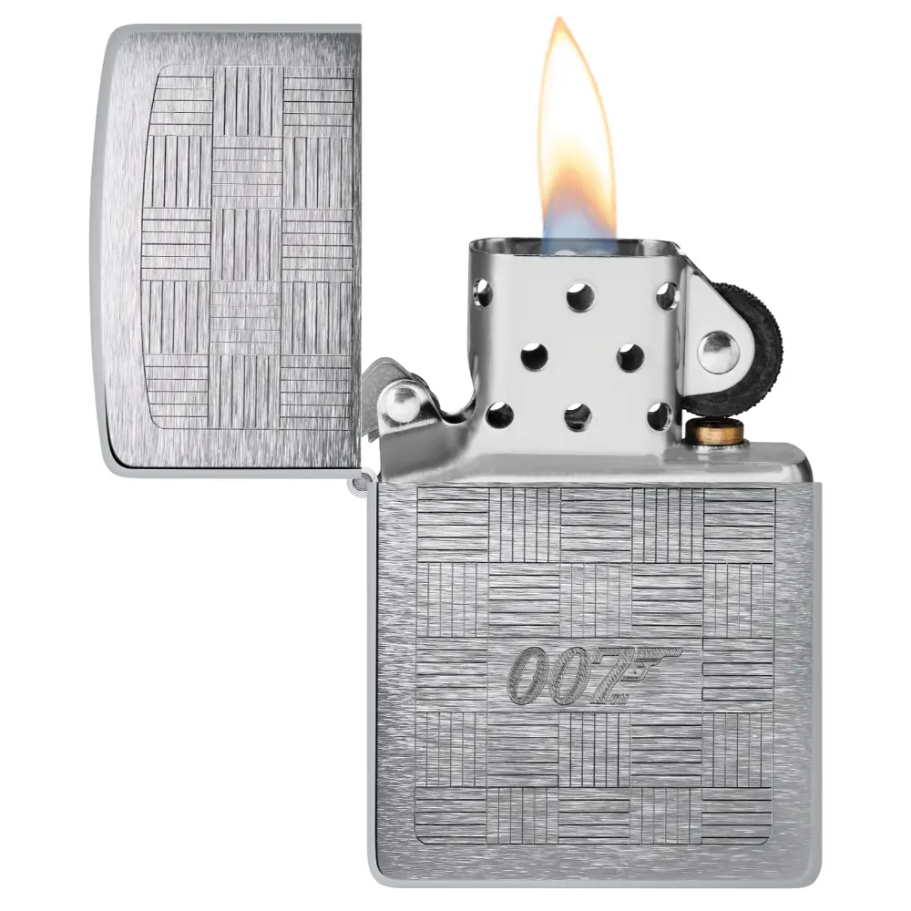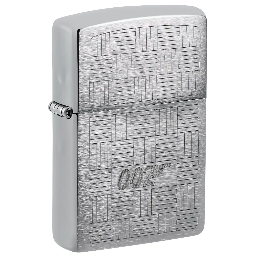 James Bond® is known for his style, and this classic Brushed Chrome lighter emulates the look and texture of the finest suits. An intricate crosshatch pattern centers on the 007™ logo in a timeless Auto Engrave design. Comes packaged in a gift box. For optimal performance fill with Zippo lighter fuel.