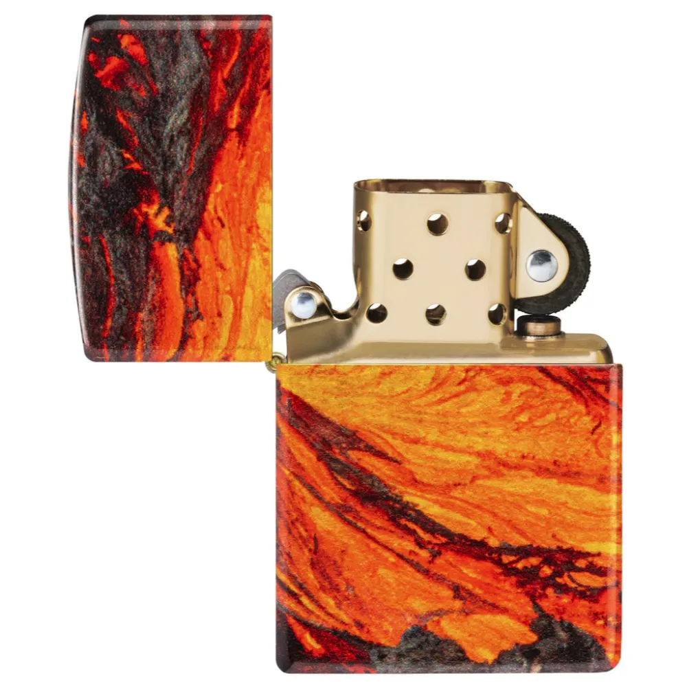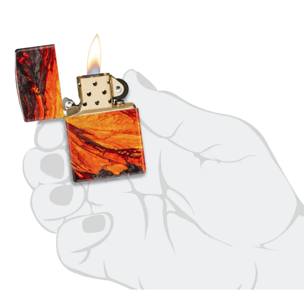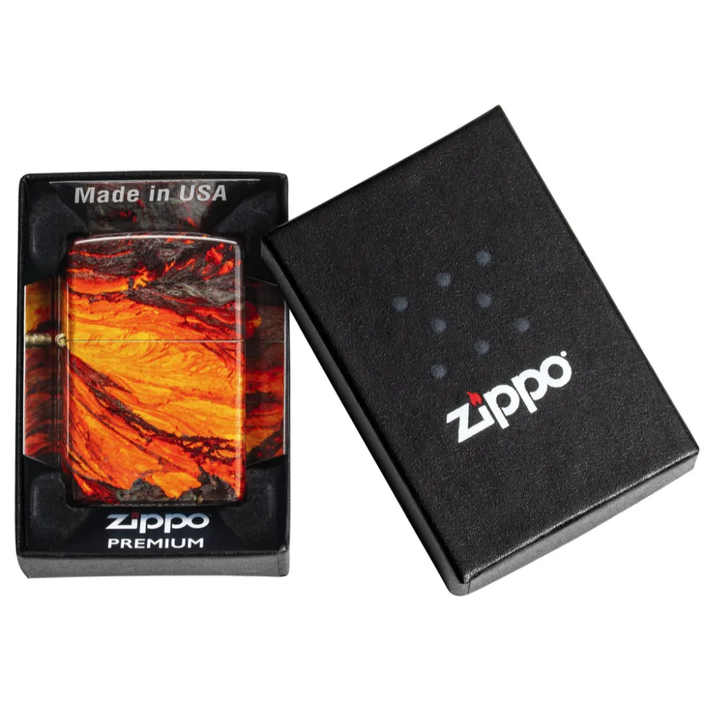 We unveiled 540 Fusion last autumn, and we’re just getting started! Glowing lava flows around all sides of this lighter and is complemented with iridescent metallic tones, combining the hallmarks of both our 540 Color and Fusion processes. Comes packaged in a gift box. For optimal performance, fill with Zippo lighter fuel.
