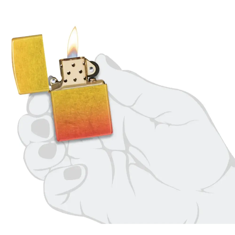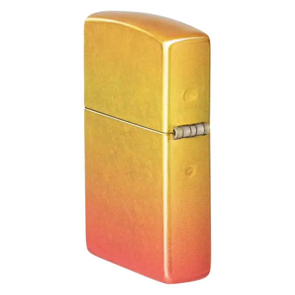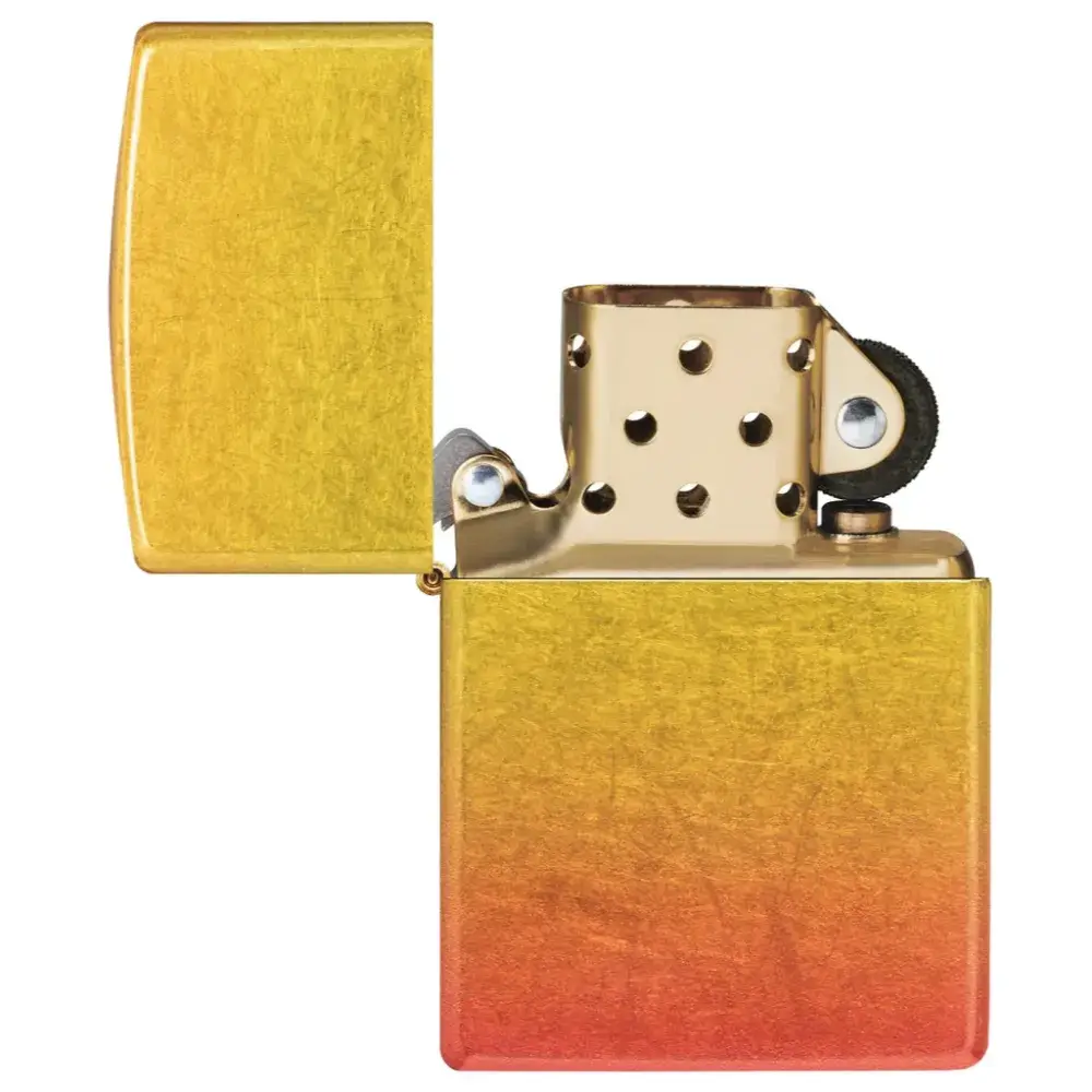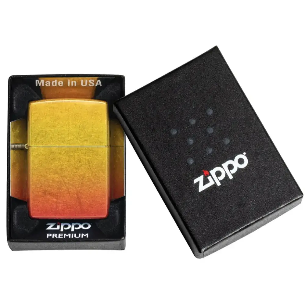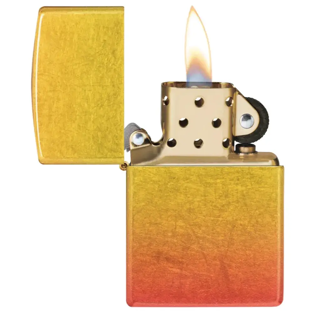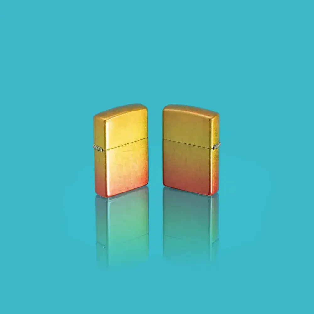 Introducing 540 Fusion: a totally new evolution of two of our most sought-after imprint methods. Shimmering metallic elements and sleek, translucent color palettes – the hallmark of our Fusion process – join forces with our proprietary 540 Color technology to envelop the lighter on all sides for a seamless, iridescent and absolutely stunning end result. On this model, golden yellows give way to fiery oranges for a luxurious ombré effect. Comes packaged in a gift box. For optimal performance fill with Zippo lighter fuel.