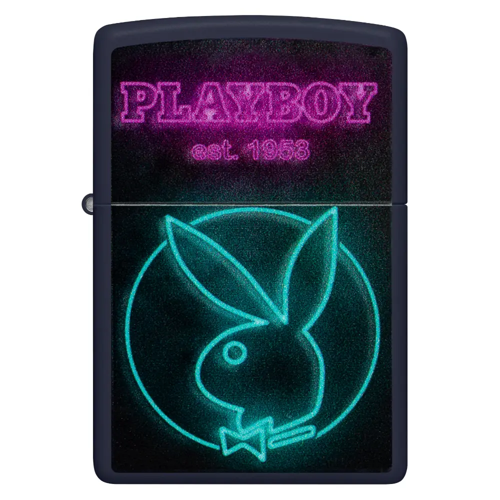 The always-dapper Rabbit Head Design appears beneath the Playboy wordmark on this classic Navy Matte lighter in a Color Image design that replicates the look of glowing neon lights. Comes packaged in a gift box. For optimal performance fill with Zippo lighter fuel.
