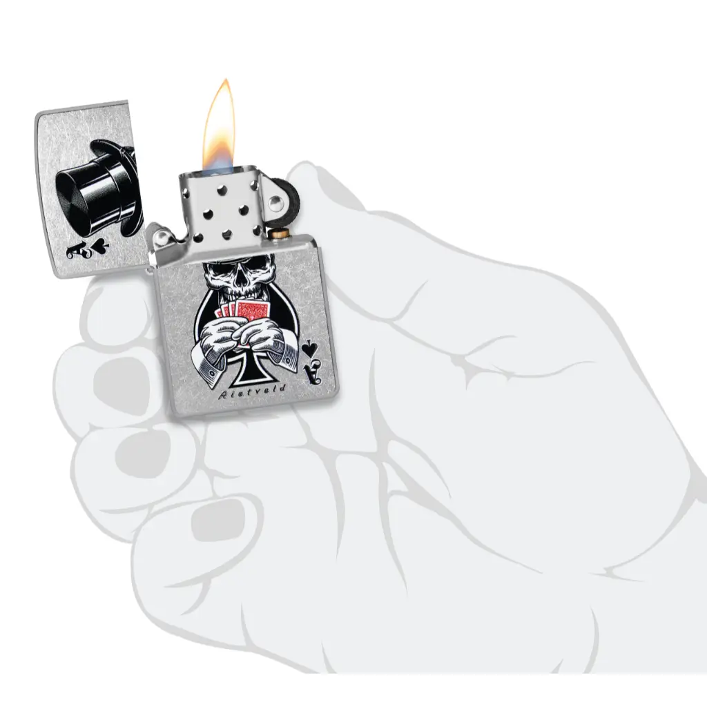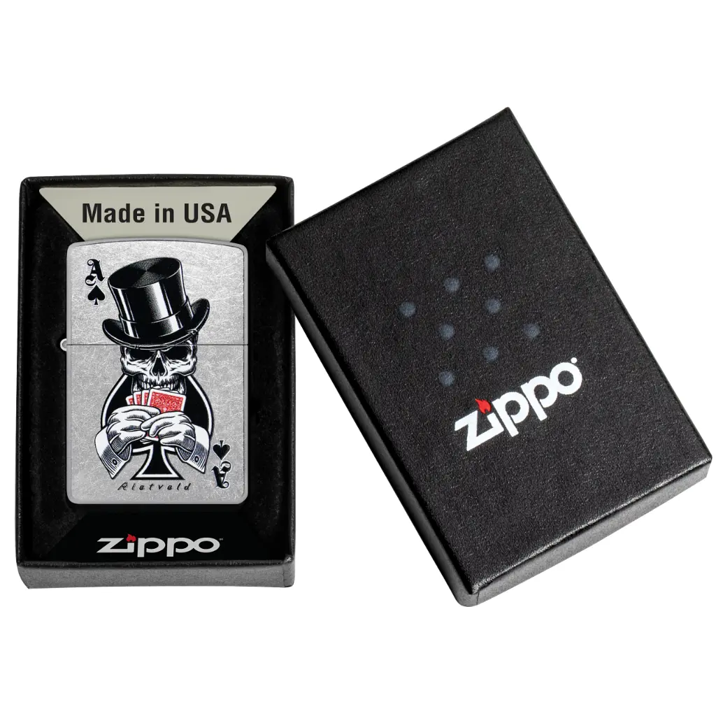 - Genuine Zippo windproof lighter with distinctive Zippo “click”