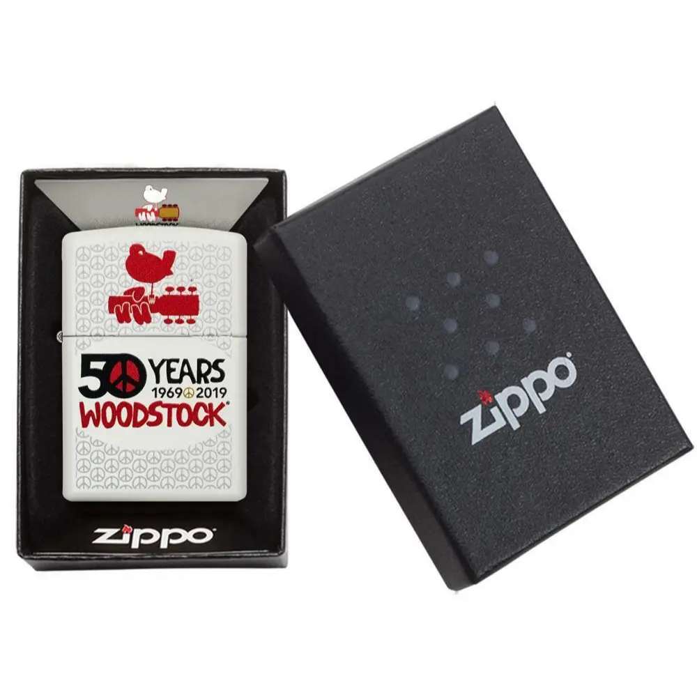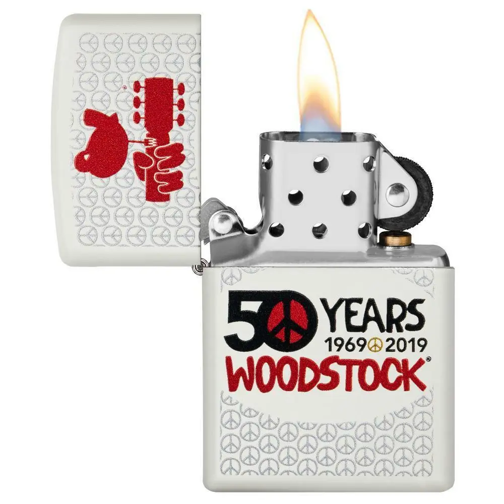 Zippo Windproof Woodstock Lighter Celebrating the 50th Anniversary of Woodstock with this White Matte Lighter.