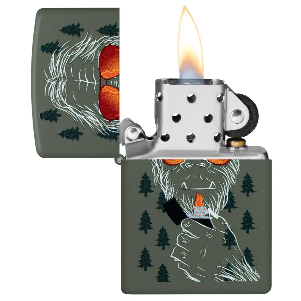 Yeti or not, here comes this classic Green Matte lighter. A super-suave sasquatch discovers fire with a windproof lighter in a big and bold Color Image design. Comes packaged in a gift box. For optimal performance fill with Zippo lighter fuel.