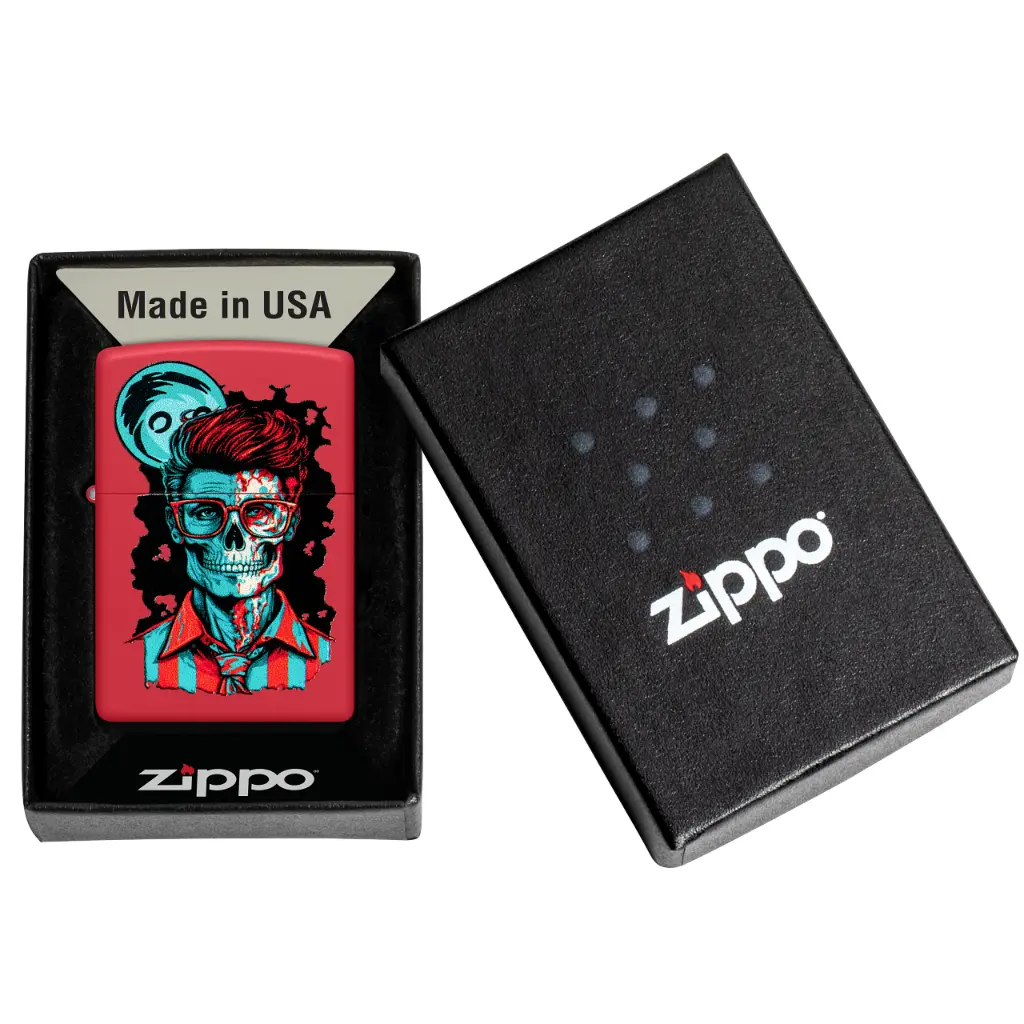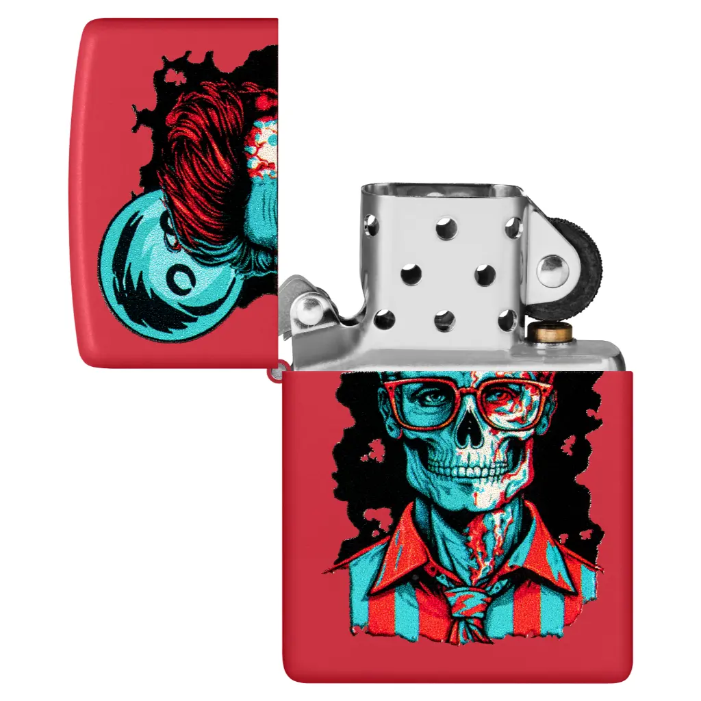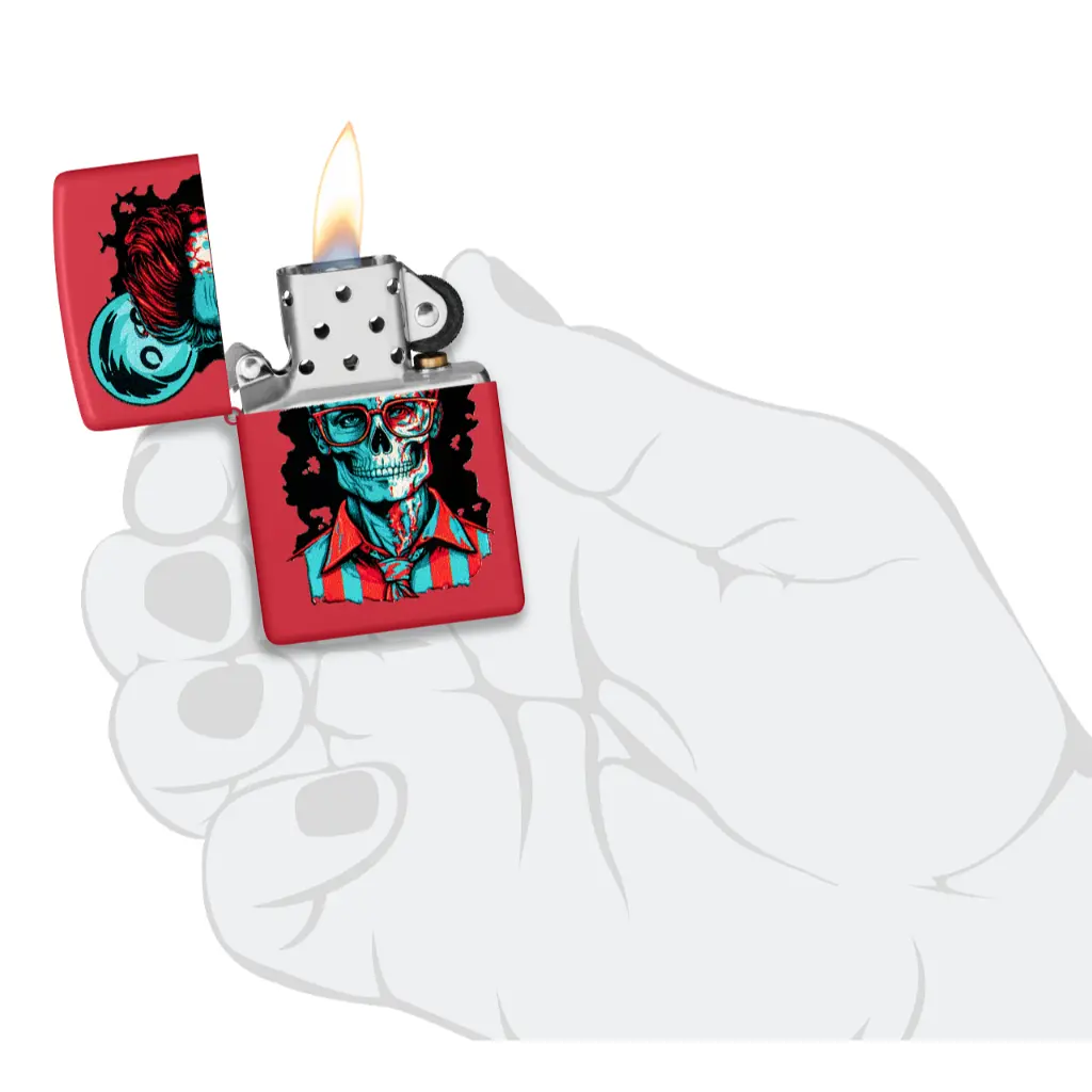 Savršeno isklesani kostur pozira na površini ovog klasičnog crvenog mat upaljača u smjelom i apstraktnom dizajnu Color Image. Dolazi pakiran u poklon kutiji.