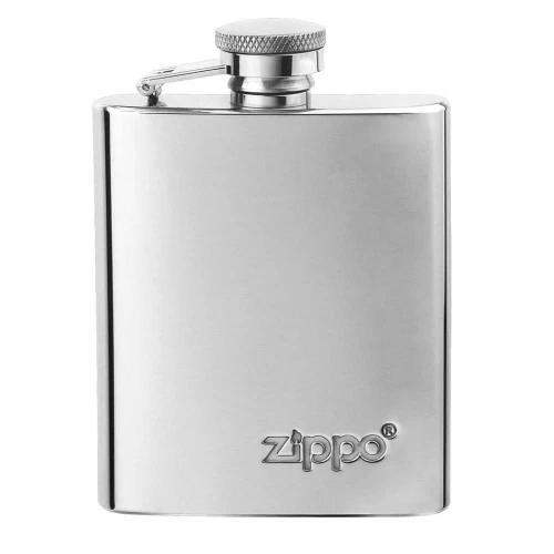 Zippova pljoska od nehrđajućeg čelika odličan je poklon prijatelju. Ova pljoska od 0,088 litre od nehrđajućeg čelika s uklesanim Zippo logotipom i osiguranim poklopcem ima tanak, blago zakrivljen oblik za ugodno nošenje.