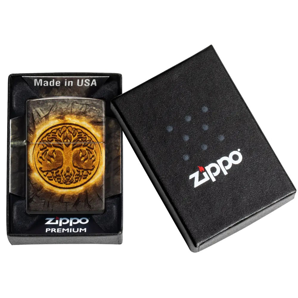 Legendarno Drvo života reinterpretirano je na ovom klasičnom upaljaču Tumbled Brass. Kultni simbol pojavljuje se u svjetlucavom 540 Fusion dizajnu koji kao da iskače s površine upaljača s nevjerojatnom dubinom i detaljima. Dolazi pakiran u poklon kutiji.
