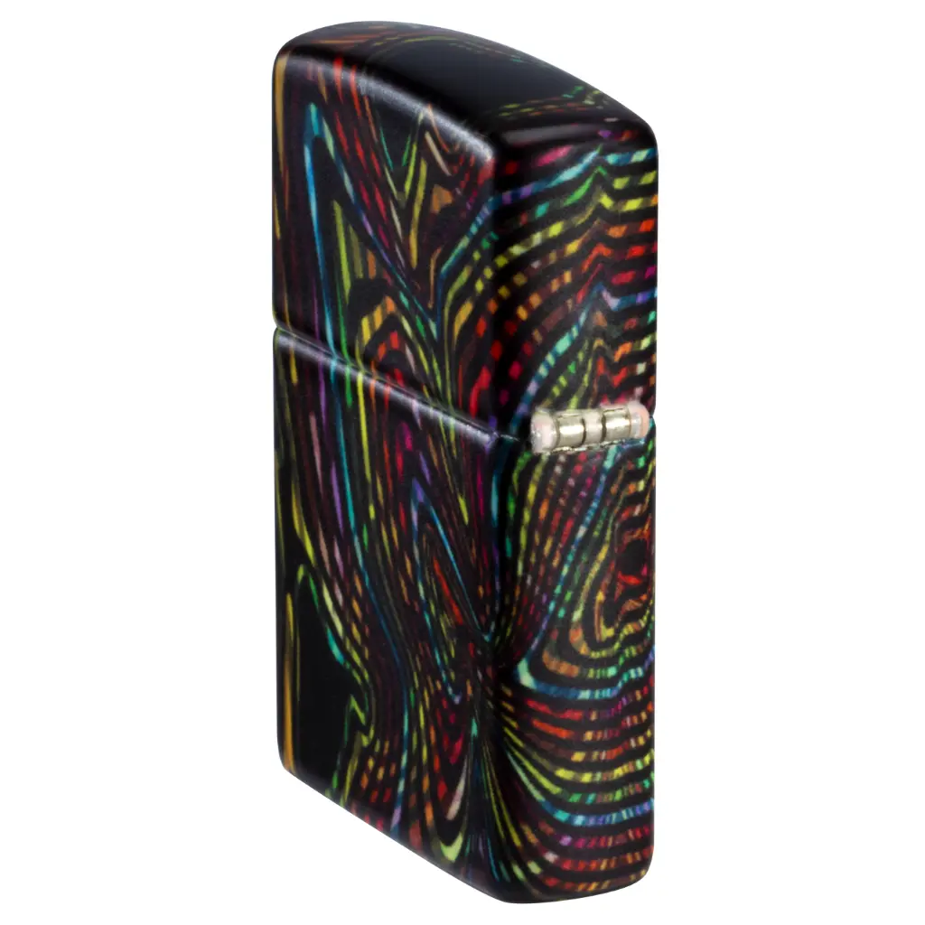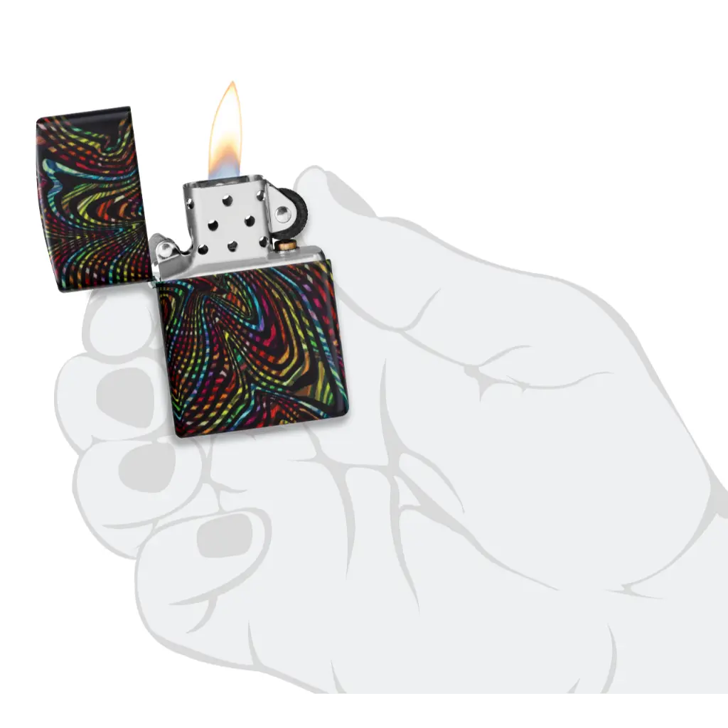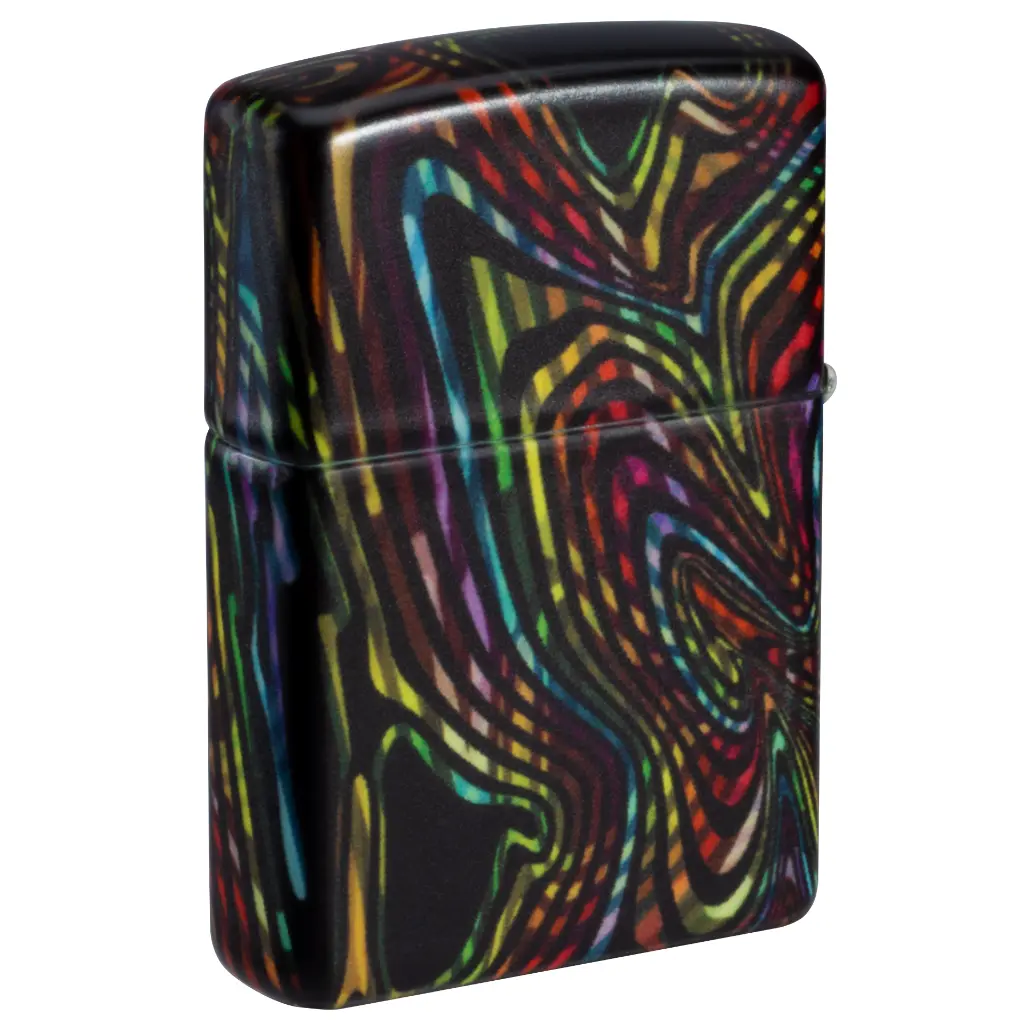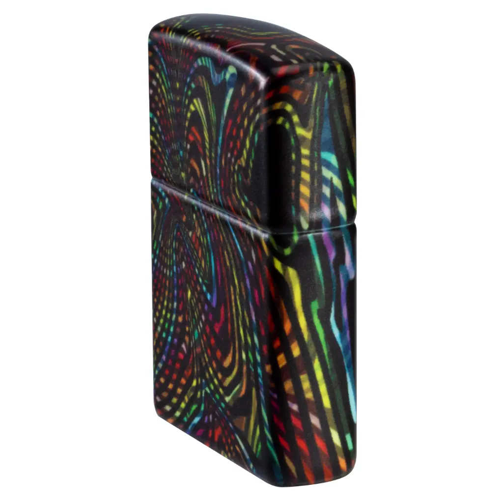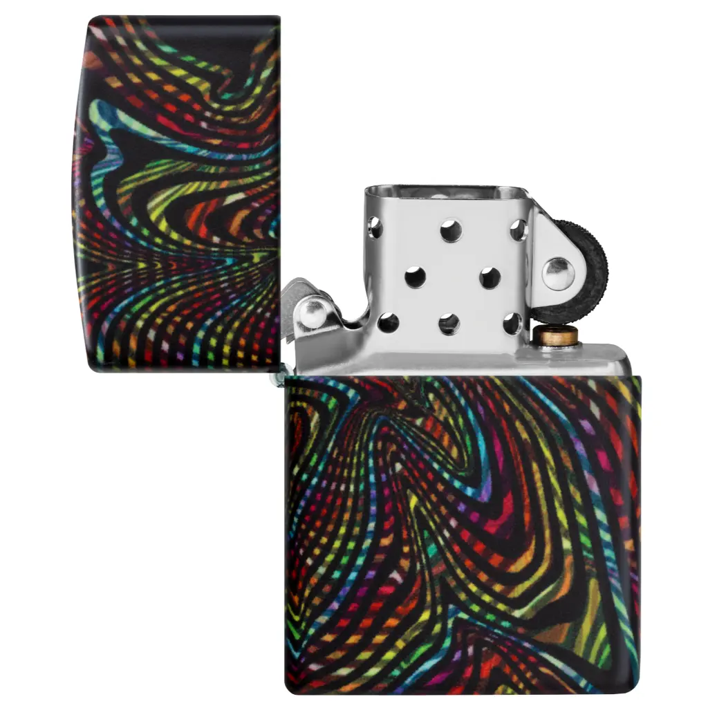 Izgubite se u beskrajnim stazama i uzorcima ovog klasičnog upaljača s 540 boja. Višebojni vrtlozi obavijaju cijeli upaljač, koji svijetli u mraku zahvaljujući našoj posebnoj završnoj obradi. Dolazi pakiran u poklon kutiji.