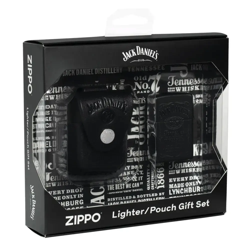 Malo je marki primjer američke izrade i kvalitete bolji od Zippa i Jack Daniel’s®, a dvije ikonične marke spajaju se u ovom glatkom i sofisticiranom paru. Elegantni Black Matte upaljač ima legendarni Jack Daniel’s® logo repliciran u crnom Color Image dizajnu za elegantan efekt ton-na-ton. Torbica od prave kože nadopunjuje klasični upaljač s logom Jack Daniel’s® Old No. 7 utisnutim u preklop. Zajedno, ovaj set slavi zajedničko naslijeđe domišljatosti i izvrsnosti i savršen je dodatak kolekciji svakog poznavatelja.