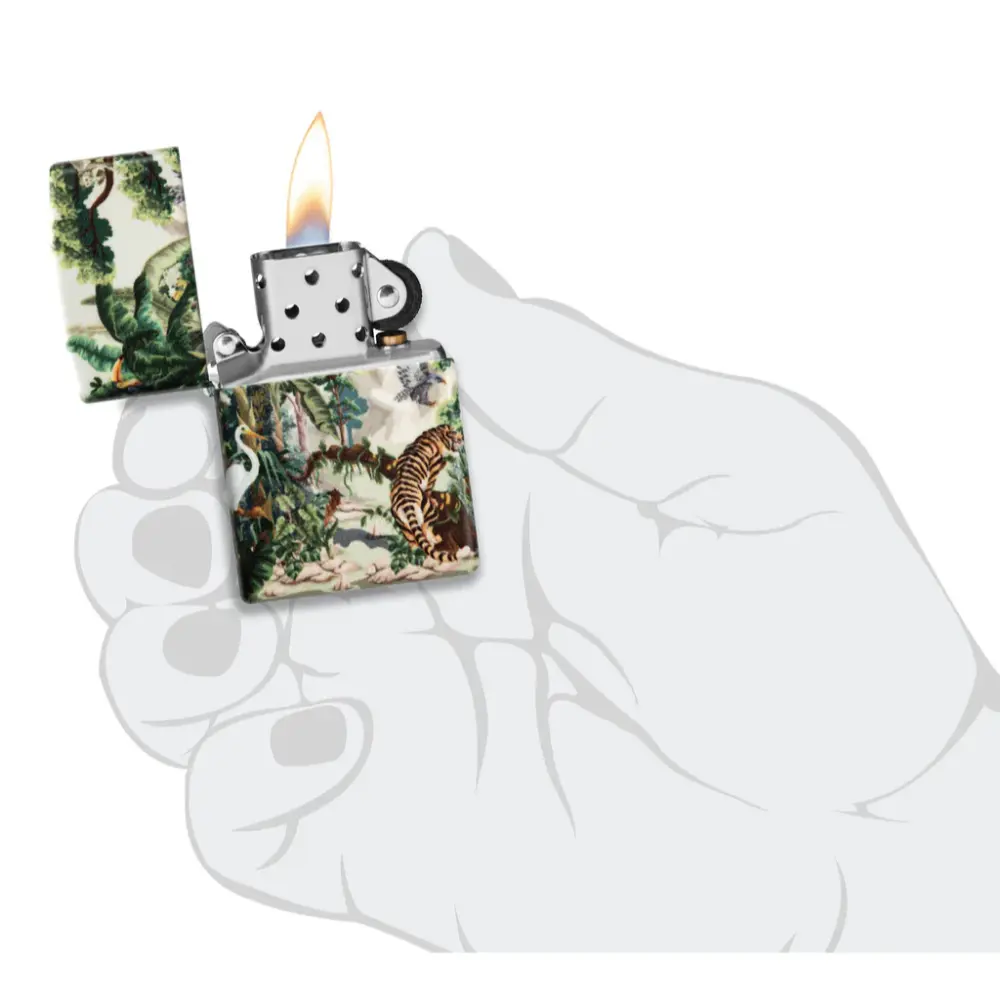Neka vas ovaj upaljač odnese ravno u tropsku džunglu! Flora i fauna prašume snimljene su u živopisnim detaljima sa svih strana upaljača 540 Color za doista impresivan učinak.