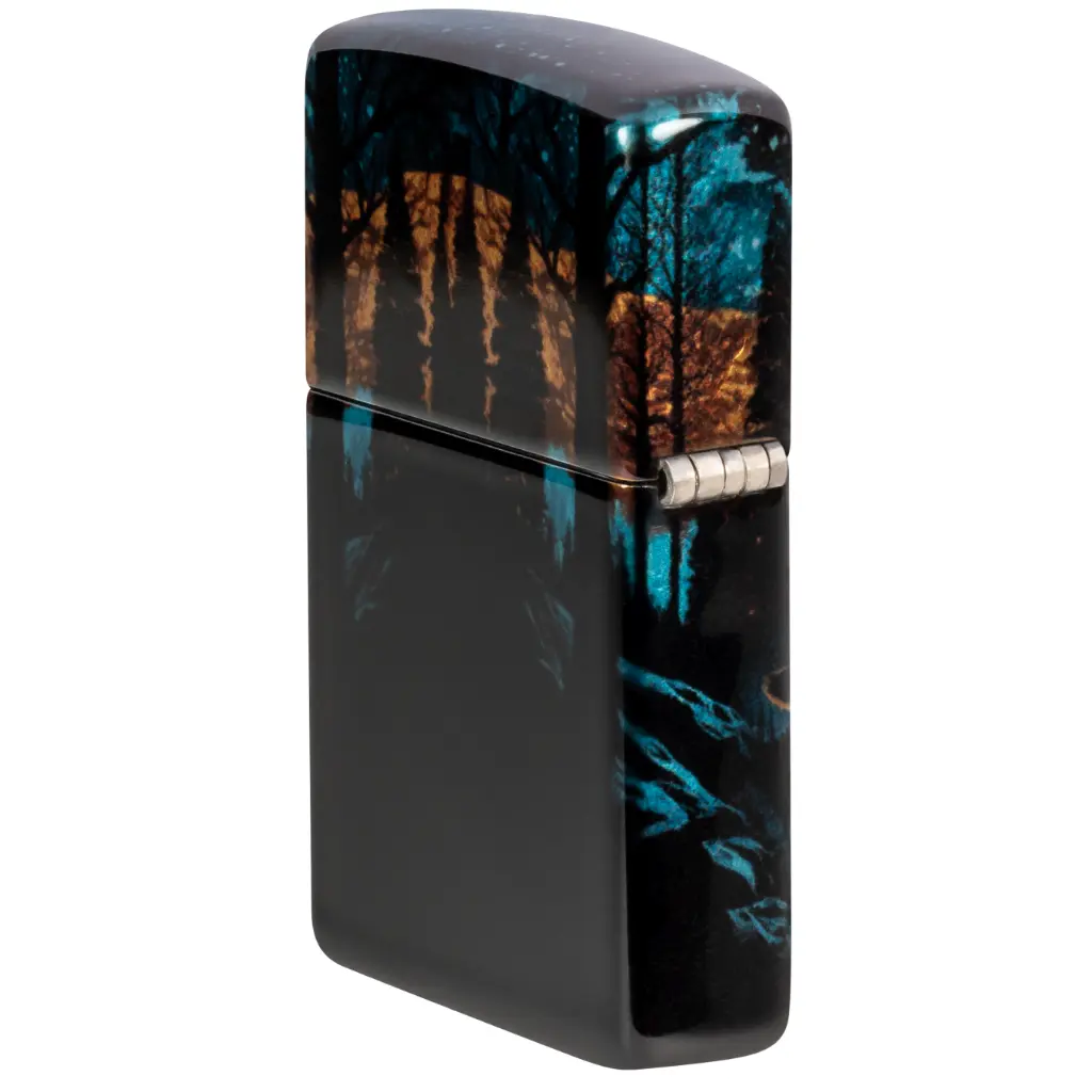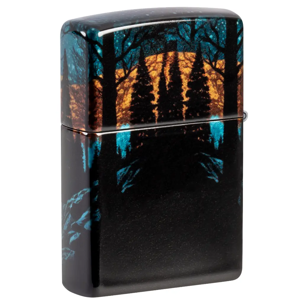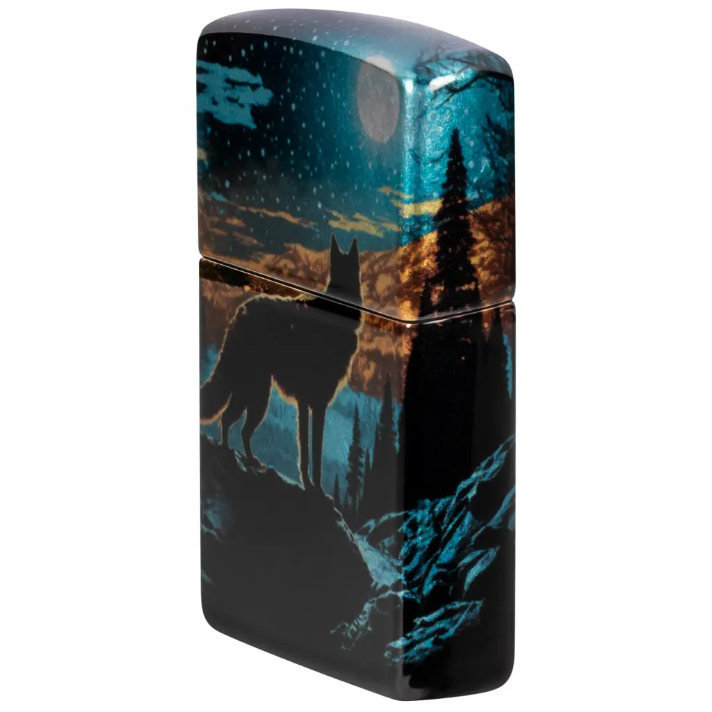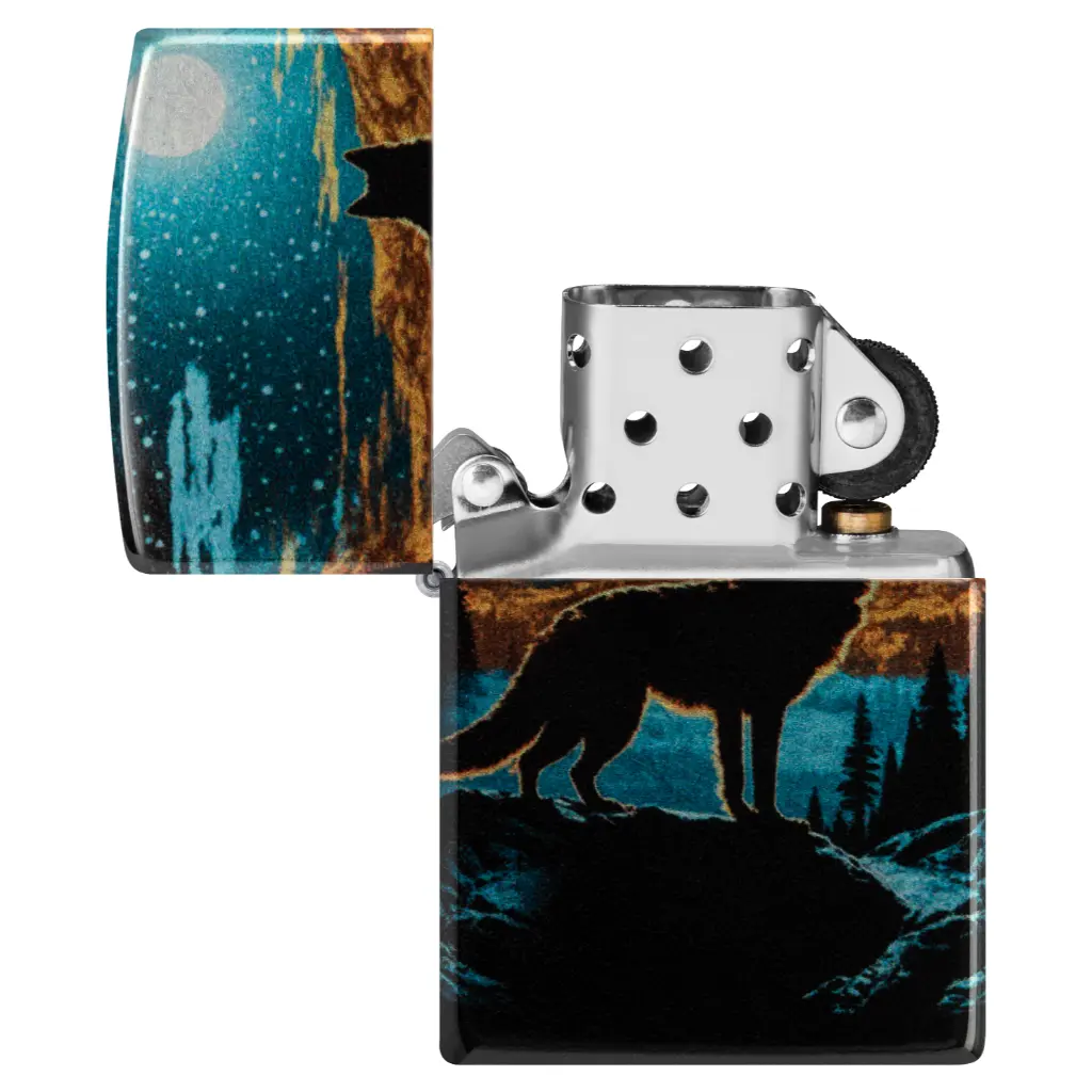 Usamljeni vuk promatra krajolik obasjan mjesečinom na ovom klasičnom upaljaču Tumbled Chrome u blistavom dizajnu 540 Fusion. Dolazi pakiran u poklon kutiji.