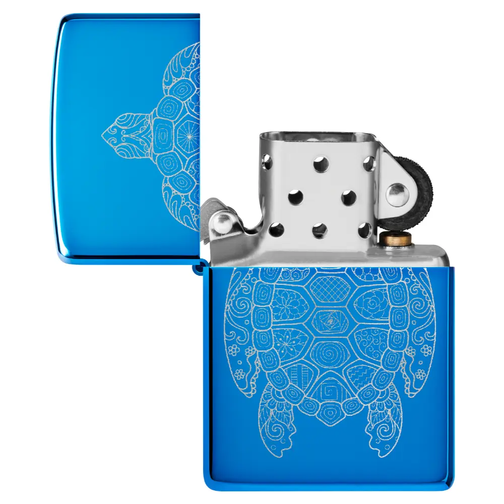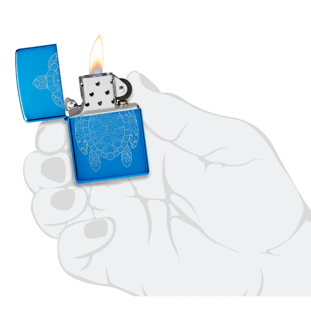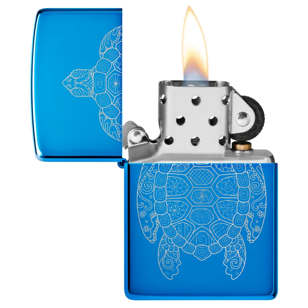 Ovaj spokojni upaljač u visokopoliranoj plavoj boji nudi dozu spokoja svojim dizajnom Photo Image koji prikazuje morsku kornjaču u umirujućim, vrtložnim detaljima.